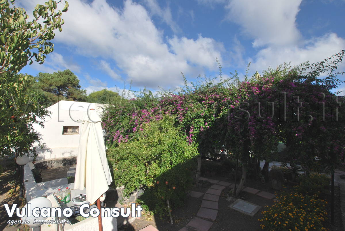 Vulcano Porto a 300 metri dal centro vendesi casa indipendente composta da 2 camere da letto, 2 bagni, cucina, soggiorno, grande terrazzo a livello coperto, cantina, terrazzo di copertura accessibile con scala in muratura, giardino privato di circa 400 mt con alberi da frutto e zona parcheggio